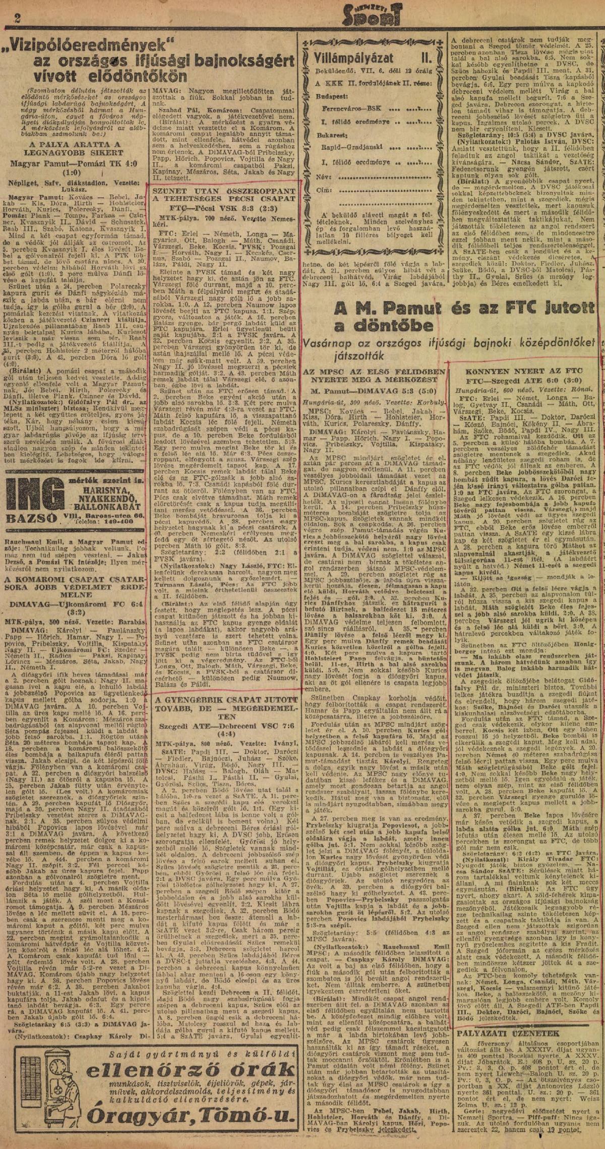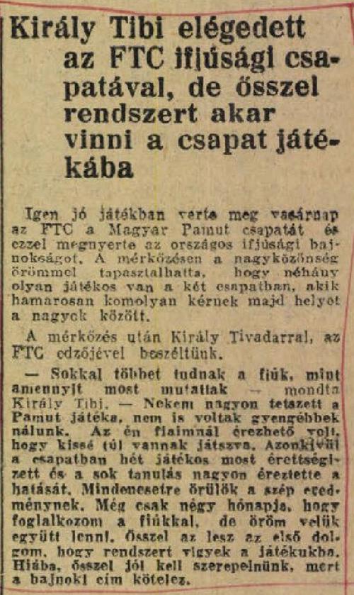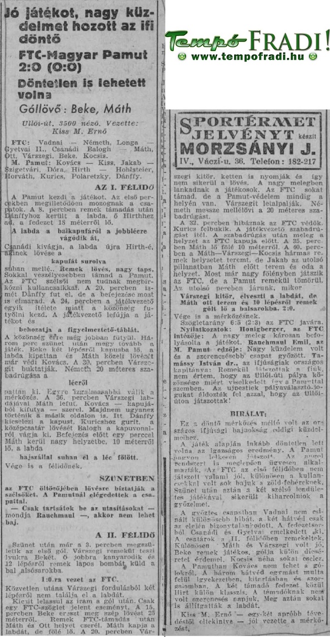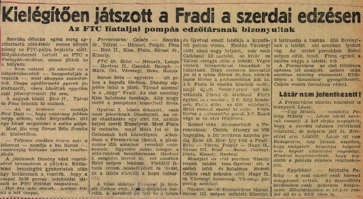 1940.VII.3. Ferencváros – FTC ifi 4:0 (edzőmérkőzés)