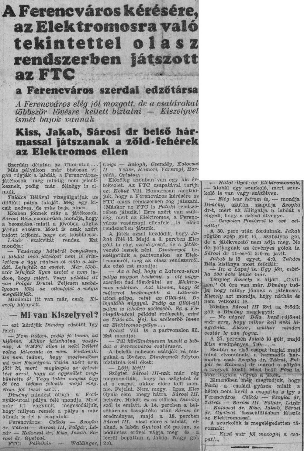 1941.II.19. Ferencváros – FTC 7:0 (edzőmérkőzés) Közzétéve: 2009. február 10. kedd | Szerző: mjozef22 A Ferencváros kérésére, az Elektromosra való tekintettel olasz rendszerben játszott az FTC Vélemény, hozzászólás? Válasz megszakításaAz e-mail címet nem tesszük közzé. A kötelező mezőket * karakterrel jelöltük Hozzászólás * Név * E-mail cím * Honlap Δ