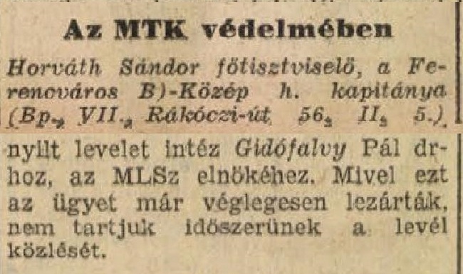 1941.II.9. MTK – Ferencváros 4:11 (edzőmérkőzés)