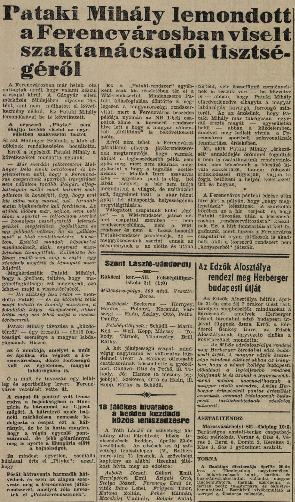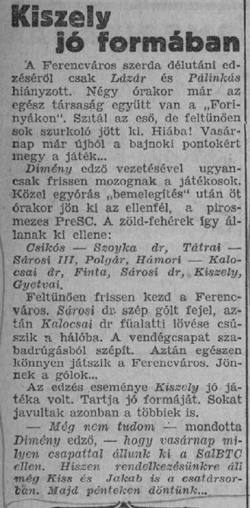 1941.IV.16. Ferencváros – PreSC ?:? (edzőmérkőzés) Közzétéve: 2009. február 10. kedd | Szerző: K@rcsi Pataki Mihály lemondott a Ferencvárosban viselt szaktanácsadói tisztségéről Vélemény, hozzászólás? Válasz megszakításaAz e-mail címet nem tesszük közzé. A kötelező mezőket * karakterrel jelöltük Hozzászólás * Név * E-mail cím * Honlap Δ