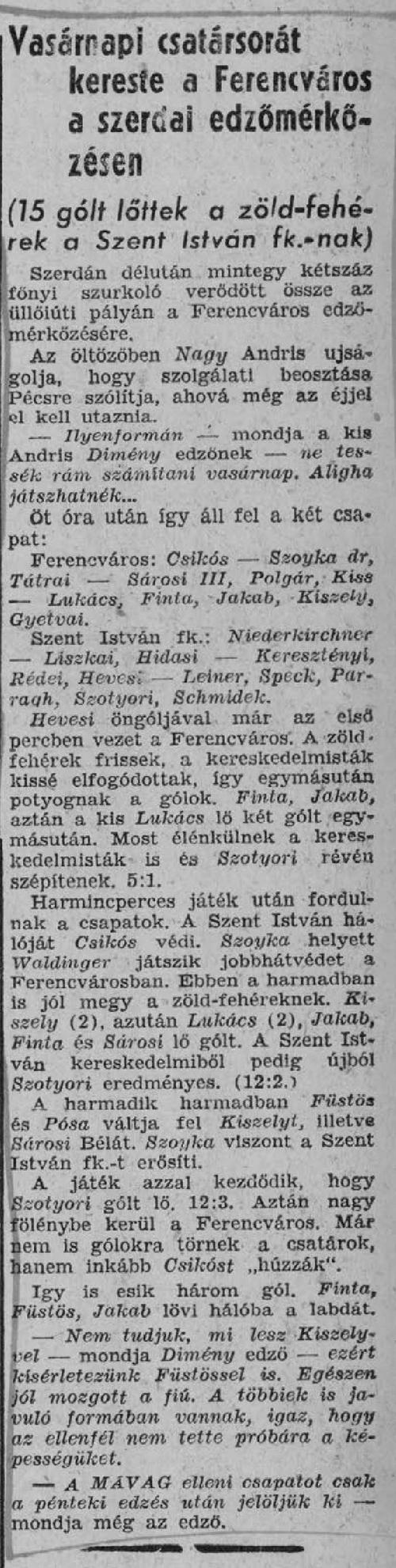 Kategória: 1941/42 | Címke: 1941/42, edzőmérkőzés, Szent István fk.