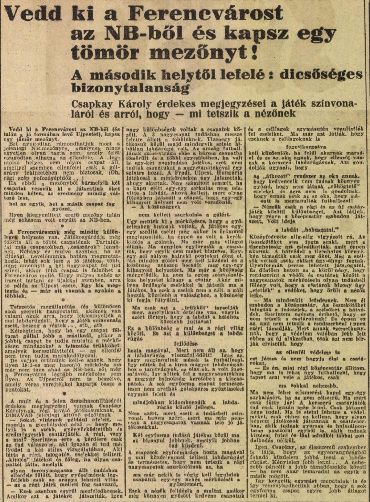 Csapkay Károly érdekes megjegyzései a játék színvonaláról és arról, hogy — mi tetszik a nézőnek