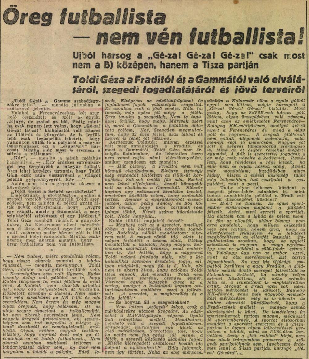 1941.XII.7. Ferencváros – Szeged 2:3 Közzétéve: 2009. február 10. kedd | Szerző: mjozef22 Rengeteg izgalom, legalább háromszor annyi Fradi-helyzet, a második félidőben kilenc és fél ferencvárosi játékos a pályán Öreg futballista — nem vén futballista! Újból harsog a „Gé-za! Gé-za! Gé-za!“ csak most nem a B) középen, hanem a Tisza partján Vélemény, hozzászólás? Válasz megszakításaAz e-mail címet nem tesszük közzé. A kötelező mezőket * karakterrel jelöltük Hozzászólás * Név * E-mail cím * Honlap Δ