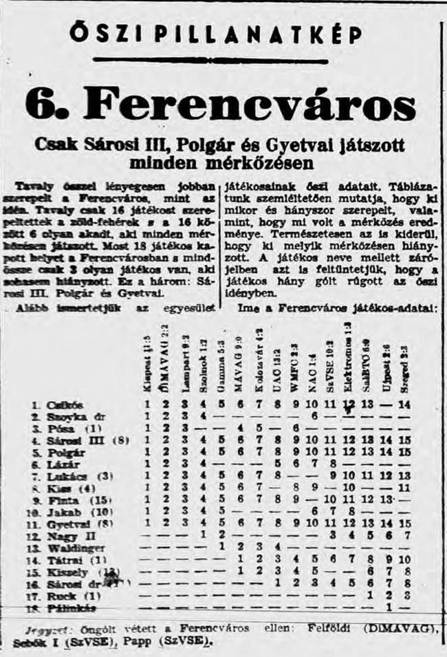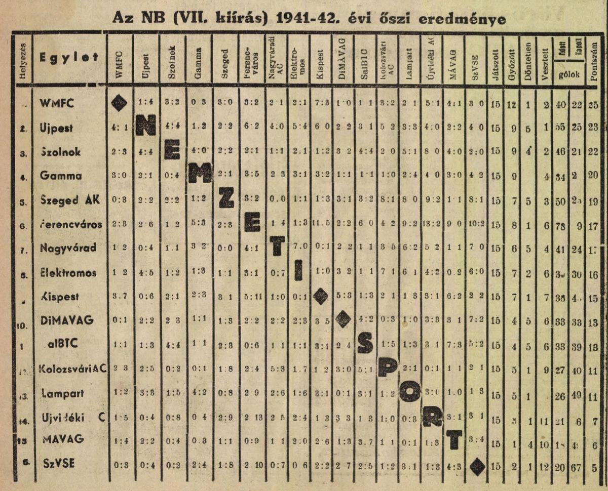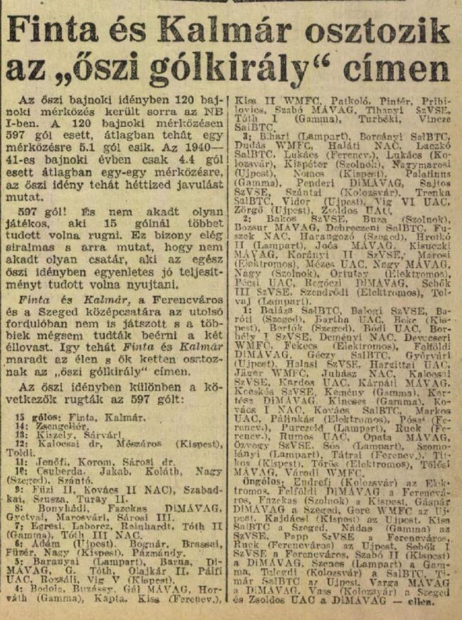 « 1941.XII.3. Ferencváros – Wekerletelepi SC 5:1 (edzőmérkőzés) 1941.XII.14. Ferencváros – Gyömrői VOGE 12:1 (edzőmérkőzés) »