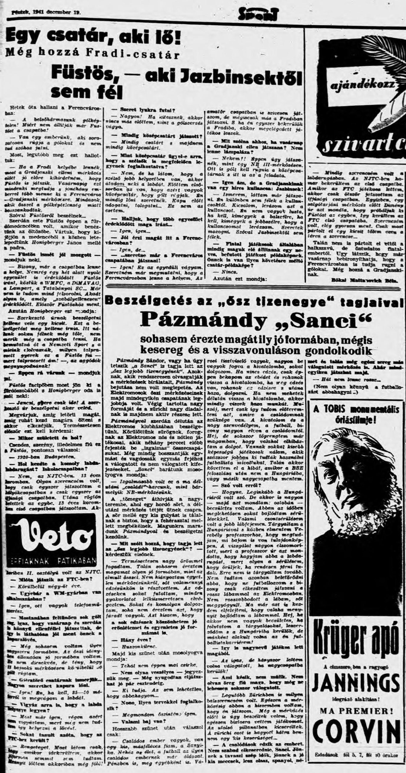 « 1941.XII.14. Ferencváros – Gyömrői VOGE 12:1 (edzőmérkőzés) 1941.XII.21. Ferencváros – Gradjanski 3:1 »