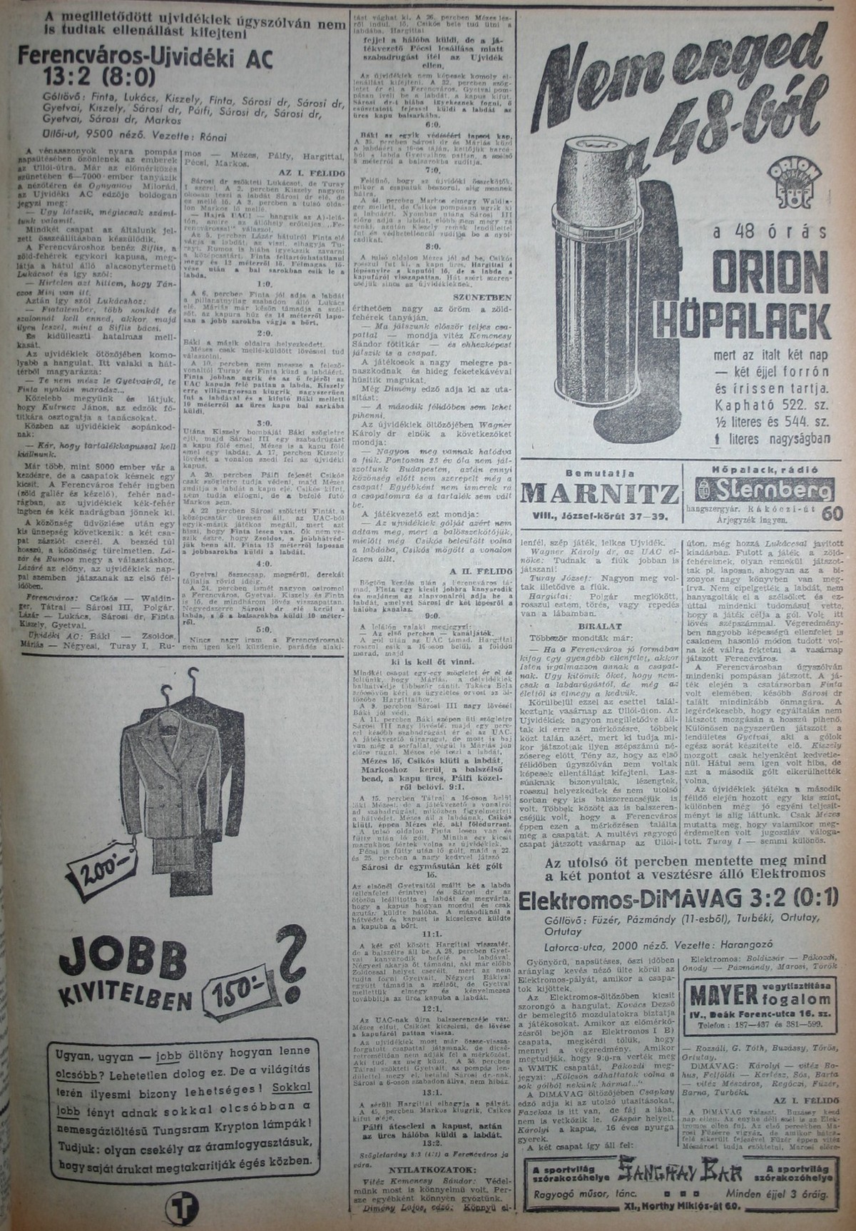 1941.X.5. Ferencváros – Újvidéki AC 13:2