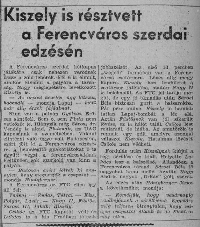 1942.IV.15. Ferencváros – FTC 5:1 (edzőmérkőzés)