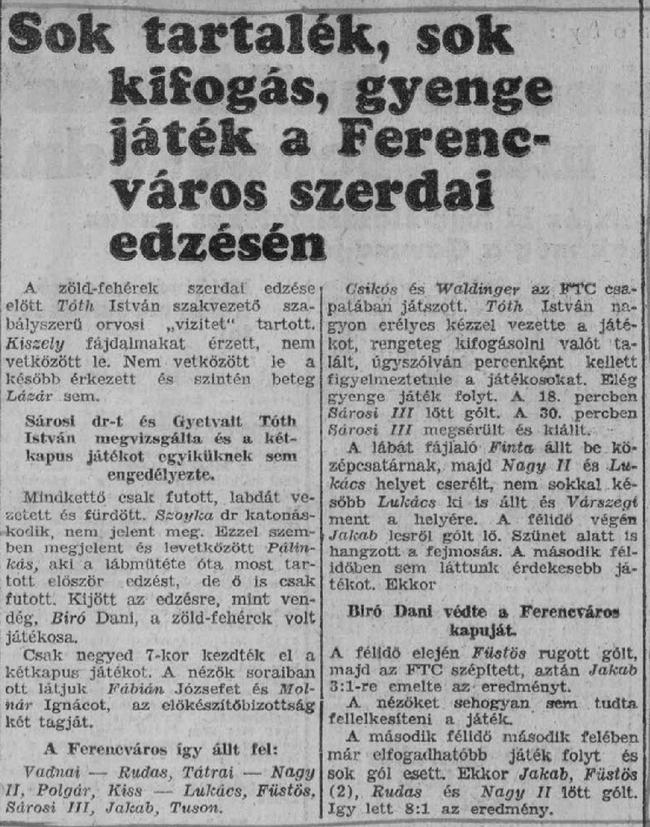 Kategória: 1941/42 | Címke: 1941/42, Biró Mihály Dániel, edzőmérkőzés, Ferencváros - FTC