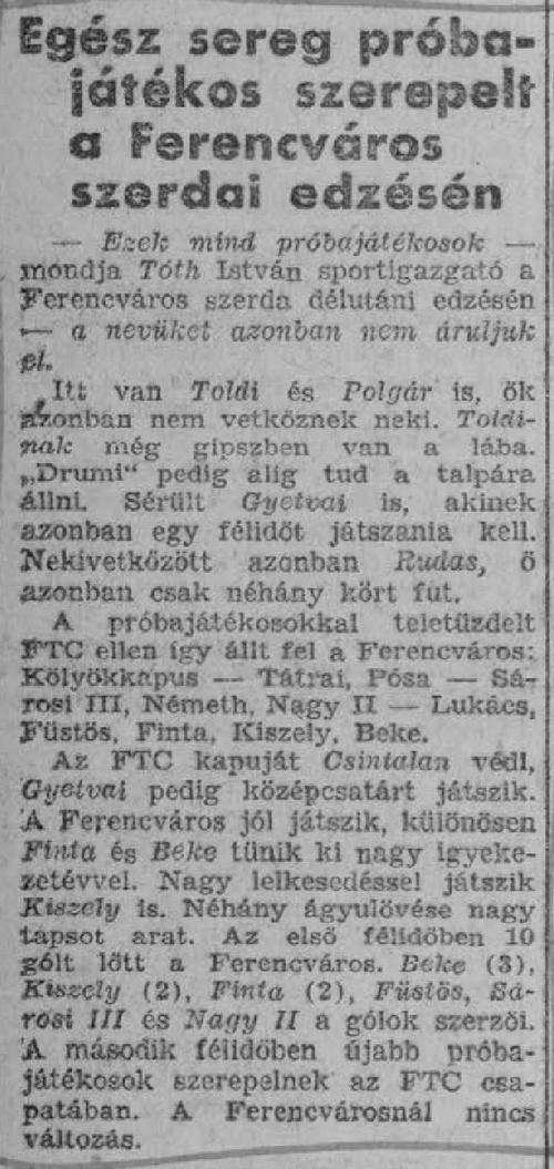 Kategória: 1942/43 | Címke: 1942/43, edzőmérkőzés, Ferencváros - FTC