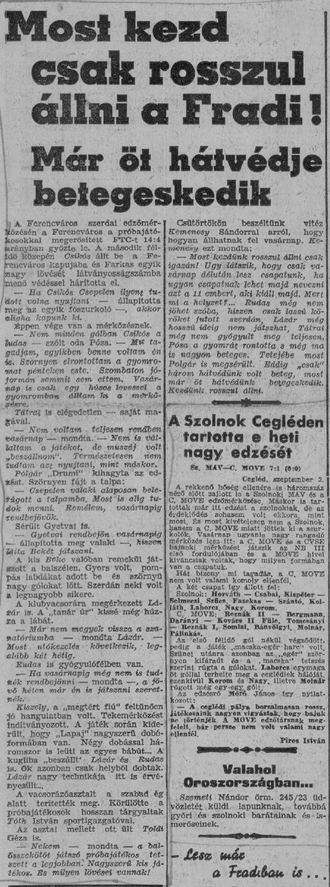 1942.IX.2. Ferencváros – FTC 14:4 (edzőmérkőzés)