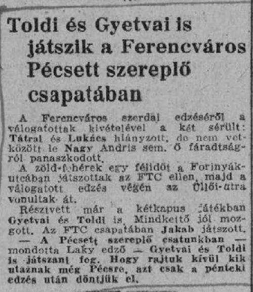 1942.X.28. Ferencváros – FTC ?:? (edzőmérkőzés)