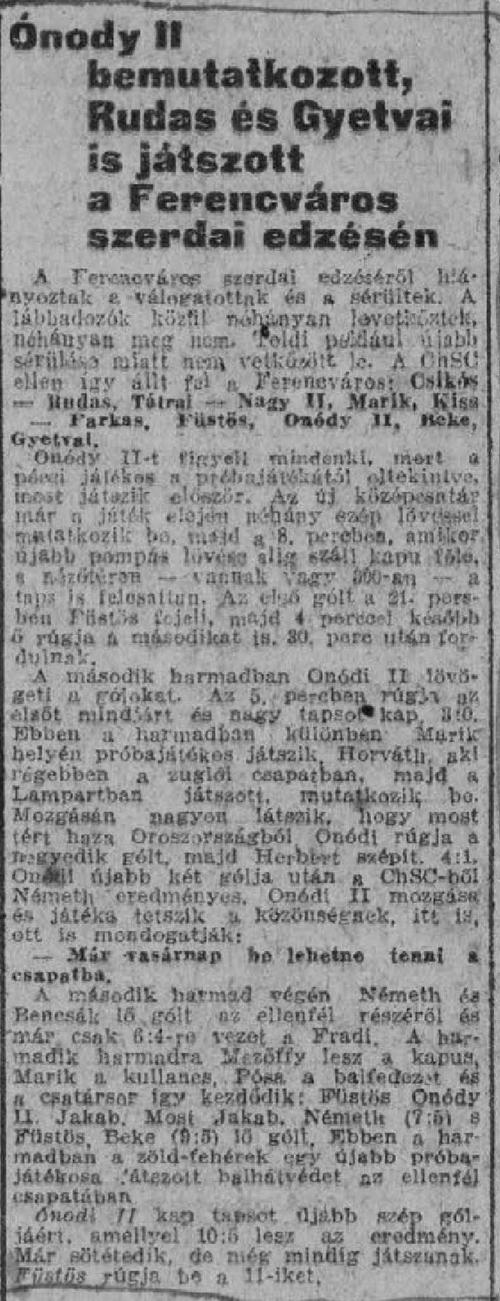 Kategória: 1942/43 | Címke: 1942/43, ChSC, edzőmérkőzés, Onódi I. Lajos, Onódi II. Béla