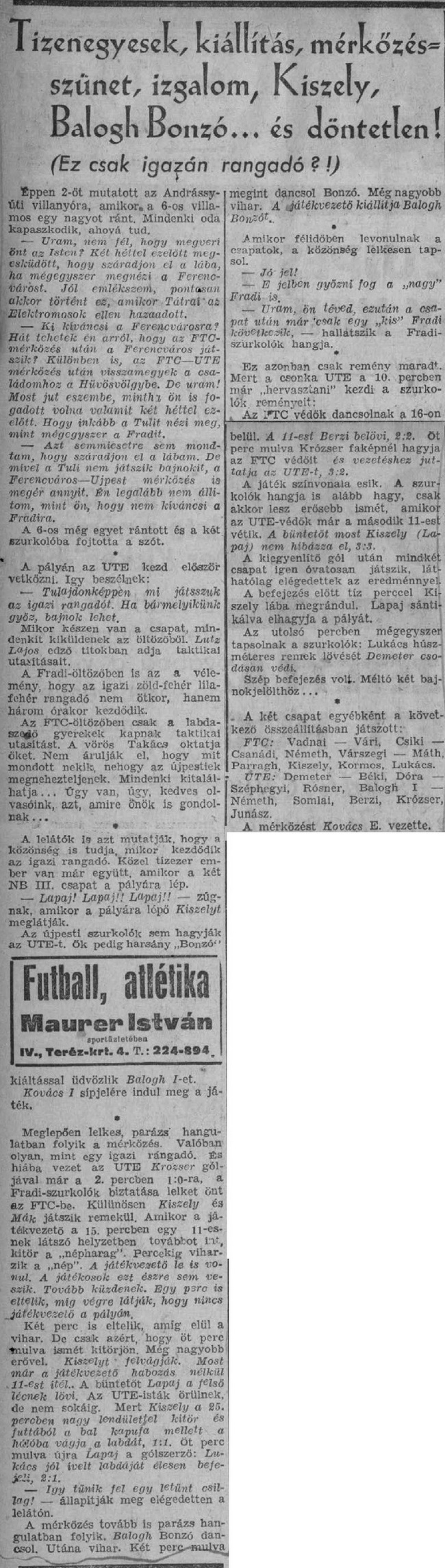- YSE - 2025.XI.30. Puskás Akadémia – Ferencváros: 1-2