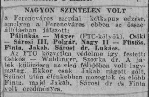 1942.V.20. Ferencváros – FTC 7:0 (edzőmérkőzés)