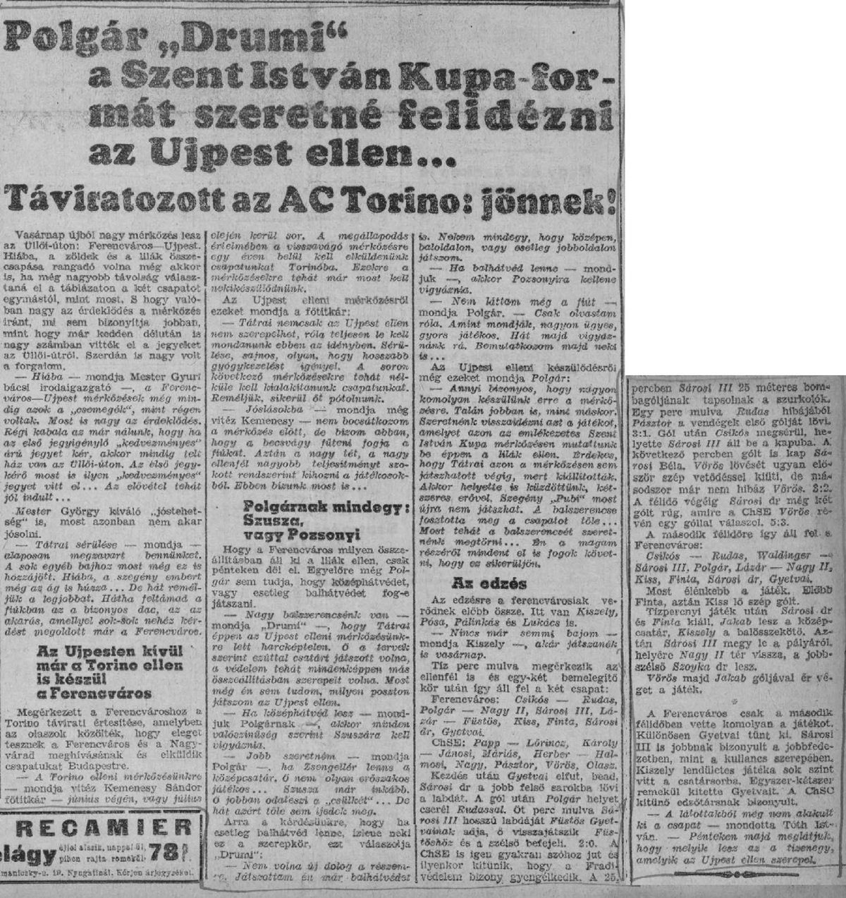 1942.V.6. Ferencváros – ChSC 8:4 (edzőmérkőzés)