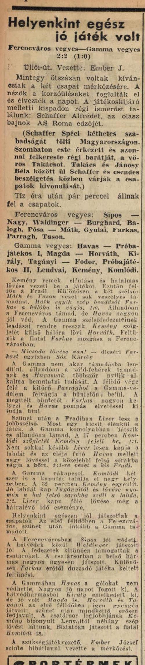 1942.VIII.9. Szt. István kupa, Elektromos – Ferencváros 0:5 Közzétéve: 2009. február 11. szerda | Szerző: K@rcsi A gyenge Elektromos ellen a II. félidőben leállt a Ferencváros Vélemény, hozzászólás? Válasz megszakításaAz e-mail címet nem tesszük közzé. A kötelező mezőket * karakterrel jelöltük Hozzászólás * Név * E-mail cím * Honlap Δ