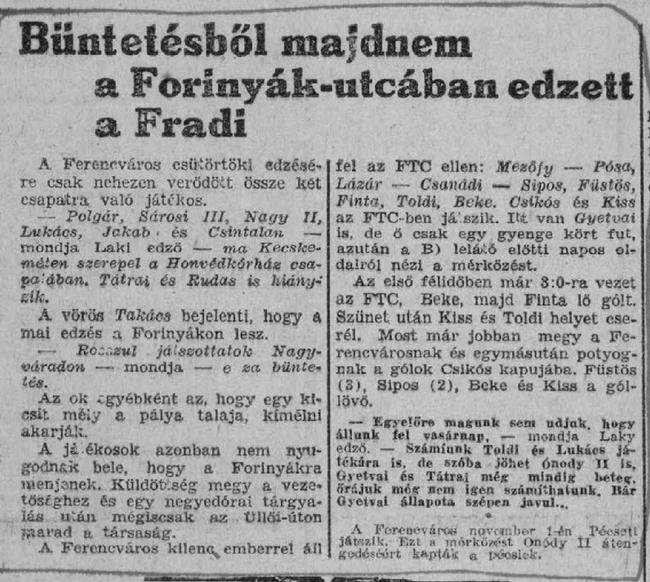 1942.X.22. Ferencváros – FTC 9:3 (edzőmérkőzés)
