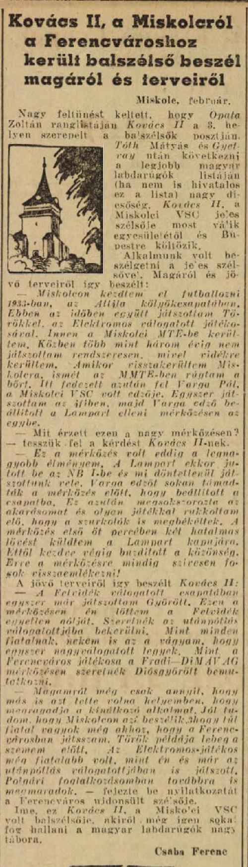 Kategória: 1942/43 | Címke: 1942/43, edzőmérkőzés, Kovács II. József, Rákosszentmihály, Sárosi III. Béla