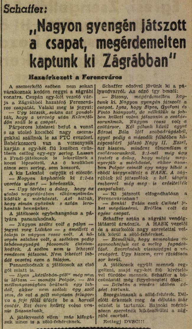 1943.VIII.29. HASK Zagreb – Ferencváros 4:2 Közzétéve: 2009. február 12. csütörtök | Szerző: mjozef22 Az utolsó 18 percben három gólt kapott a Ferencváros és így vereséget szenvedett Zágrábban Vélemény, hozzászólás? Válasz megszakításaAz e-mail címet nem tesszük közzé. A kötelező mezőket * karakterrel jelöltük Hozzászólás * Név * E-mail cím * Honlap Δ