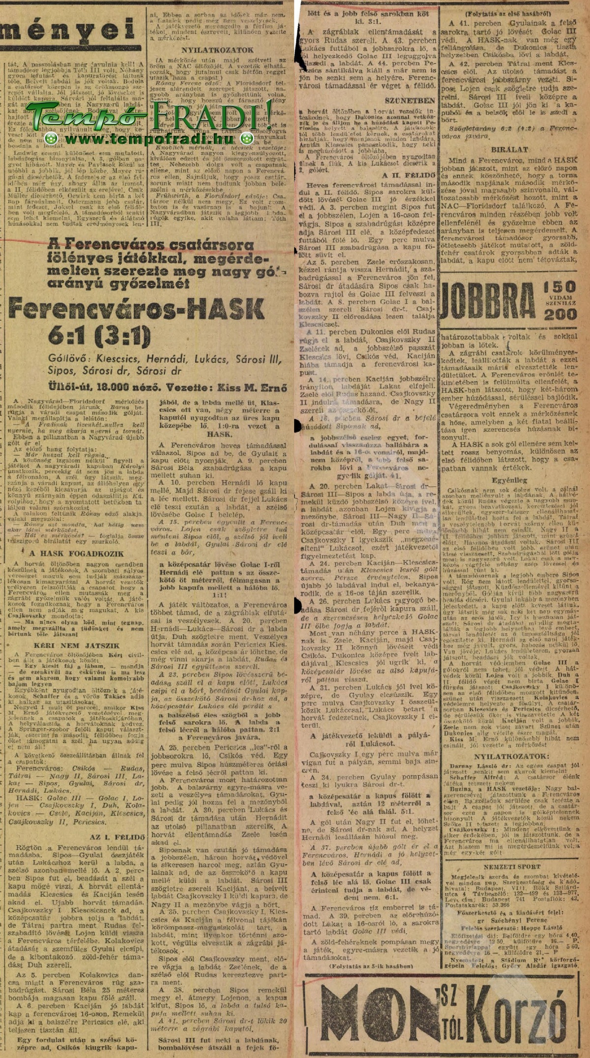 1943.XII.26. Karácsonyi torna, Ferencváros – HASK Zagreb 6:1 Közzétéve: 2009. február 12. csütörtök | Szerző: K@rcsi A Ferencváros csatársora fölényes játékkal, megérdemelten szerezte meg nagy gólarányú győzelmét Vélemény, hozzászólás? Válasz megszakításaAz e-mail címet nem tesszük közzé. A kötelező mezőket * karakterrel jelöltük Hozzászólás * Név * E-mail cím * Honlap Δ
