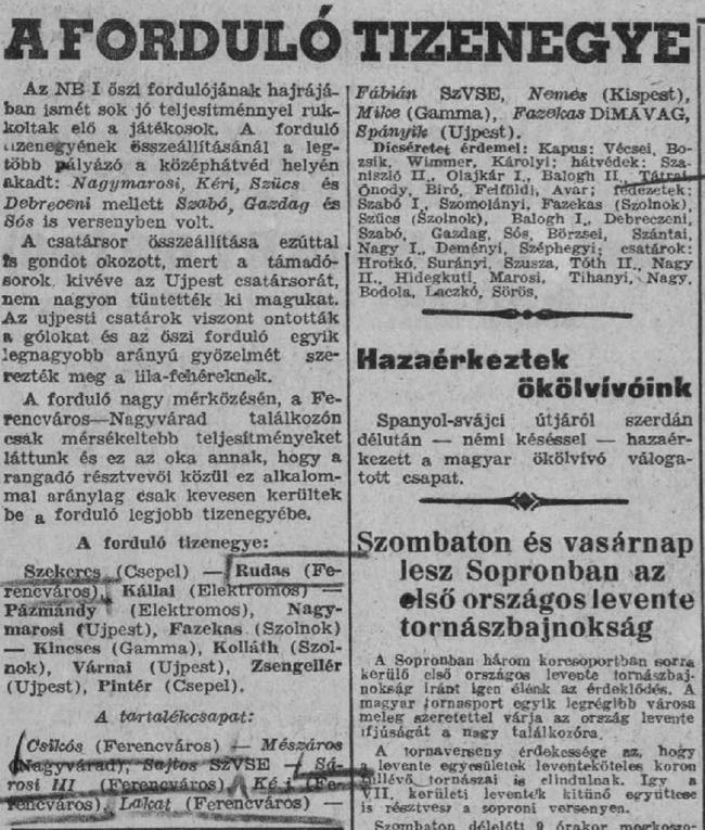 • Kincsesbánya. Nagyon kedvelem ezeket a régi videókat. A háború közepén, télen, 25 ezer néző, köztük biztos sok olyan katona aki megjárta a borzalmat is és lehet, hogy másnap indulhatott meghalni. De fontosnak tartotta, hogy láthassa Sárosit, Lakatot és a gólszerző Polgárt. Talán még erőt is adott átvészelni a háborút.