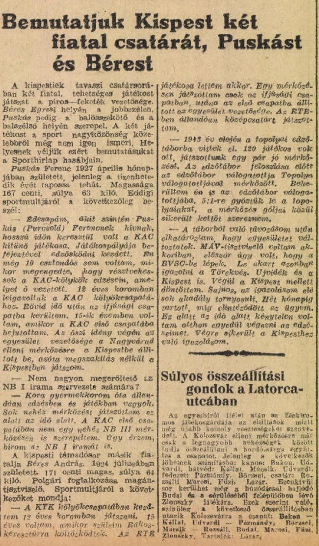 Kategória: 1943/44 | Címke: 1943/44, Bp. Honvéd (Kispest; KAC), Lukács Ede, Mészáros József, NB1, Puskás Ferenc, Sárosi György dr., Sárosi III. Béla