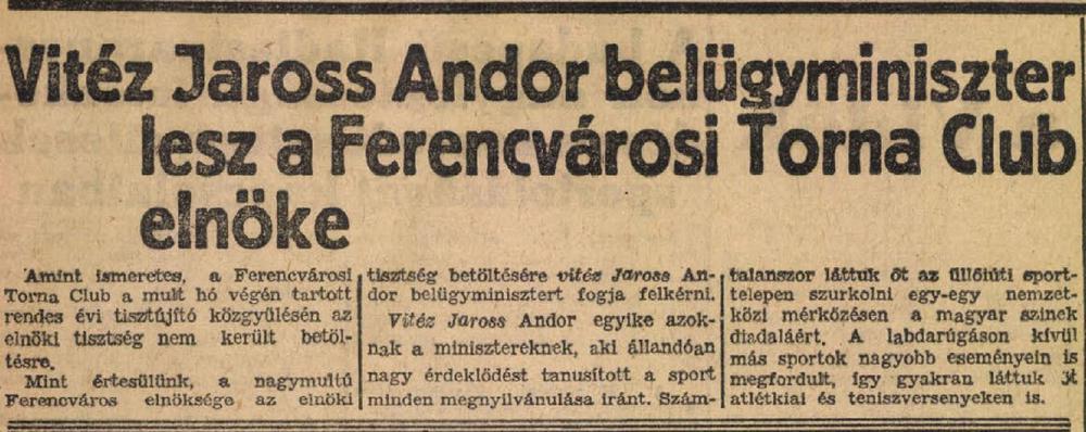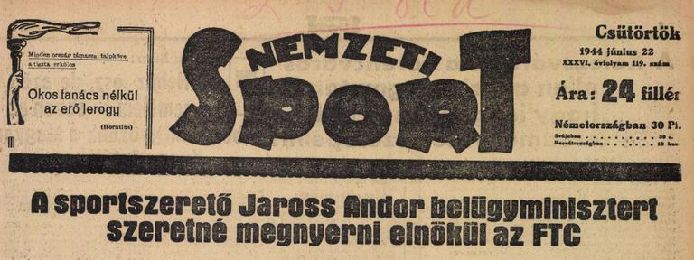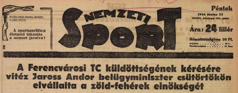 1944.VI.25. MK Döntő, Ferencváros – Kolozsvári AC 2:2 Közzétéve: 2009. február 13. péntek | Szerző: K@rcsi Vitéz Jaross Andor belügyminiszter lesz a Ferencvárosi Torna Club elnöke Döntetlenül végződött a Magyar Kupa döntője Vélemény, hozzászólás? Válasz megszakításaAz e-mail címet nem tesszük közzé. A kötelező mezőket * karakterrel jelöltük Hozzászólás * Név * E-mail cím * Honlap Δ