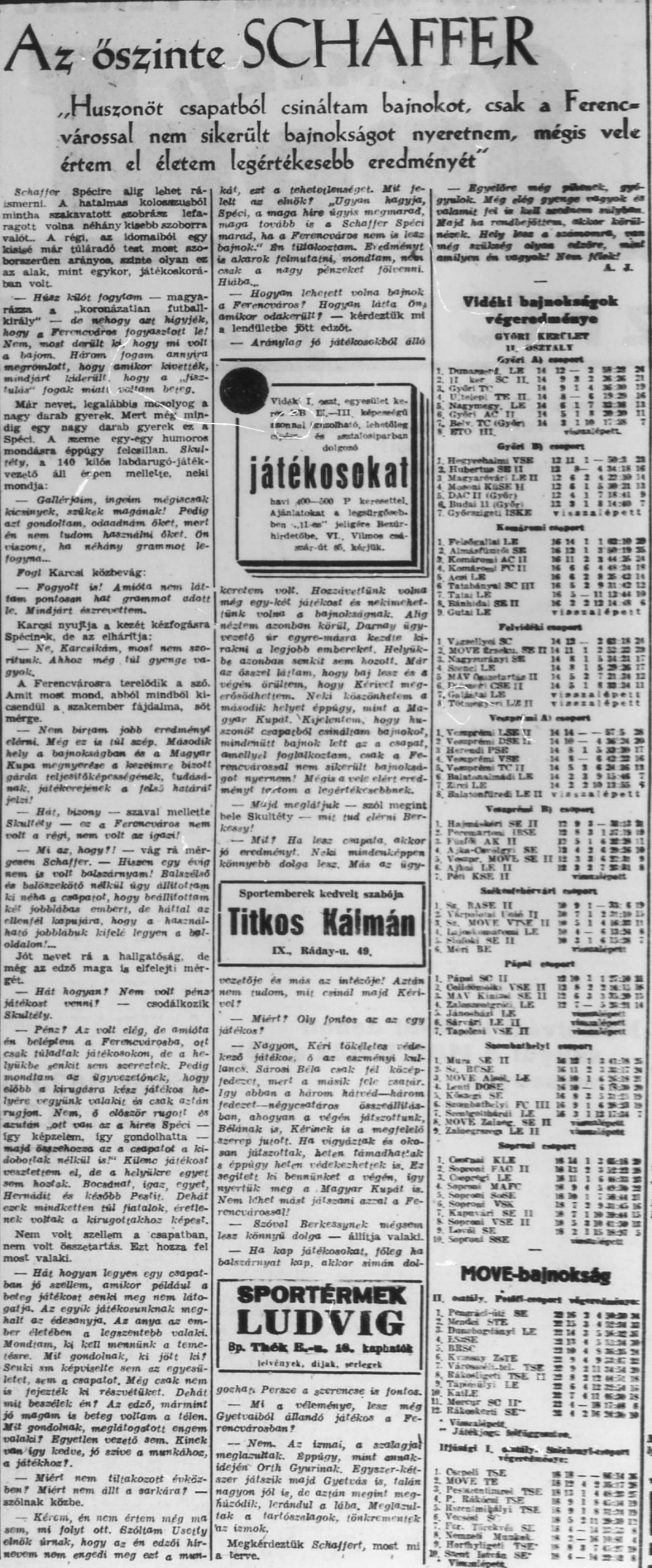Közben a szemem megakadt a címlap bal felső sarkában lévő idézeten: „Hol nincs versengés – nincs küzdőhelye bátor erőnek.” Ezzel végleg elvesztettem a fonalat. Egy 1944 júniusában megjelenő sportújság címlapján vajon mit kereshet Kisfaludy Károly idézet, aki a reformkori irodalmunk egyik legnagyobb alakja volt?
