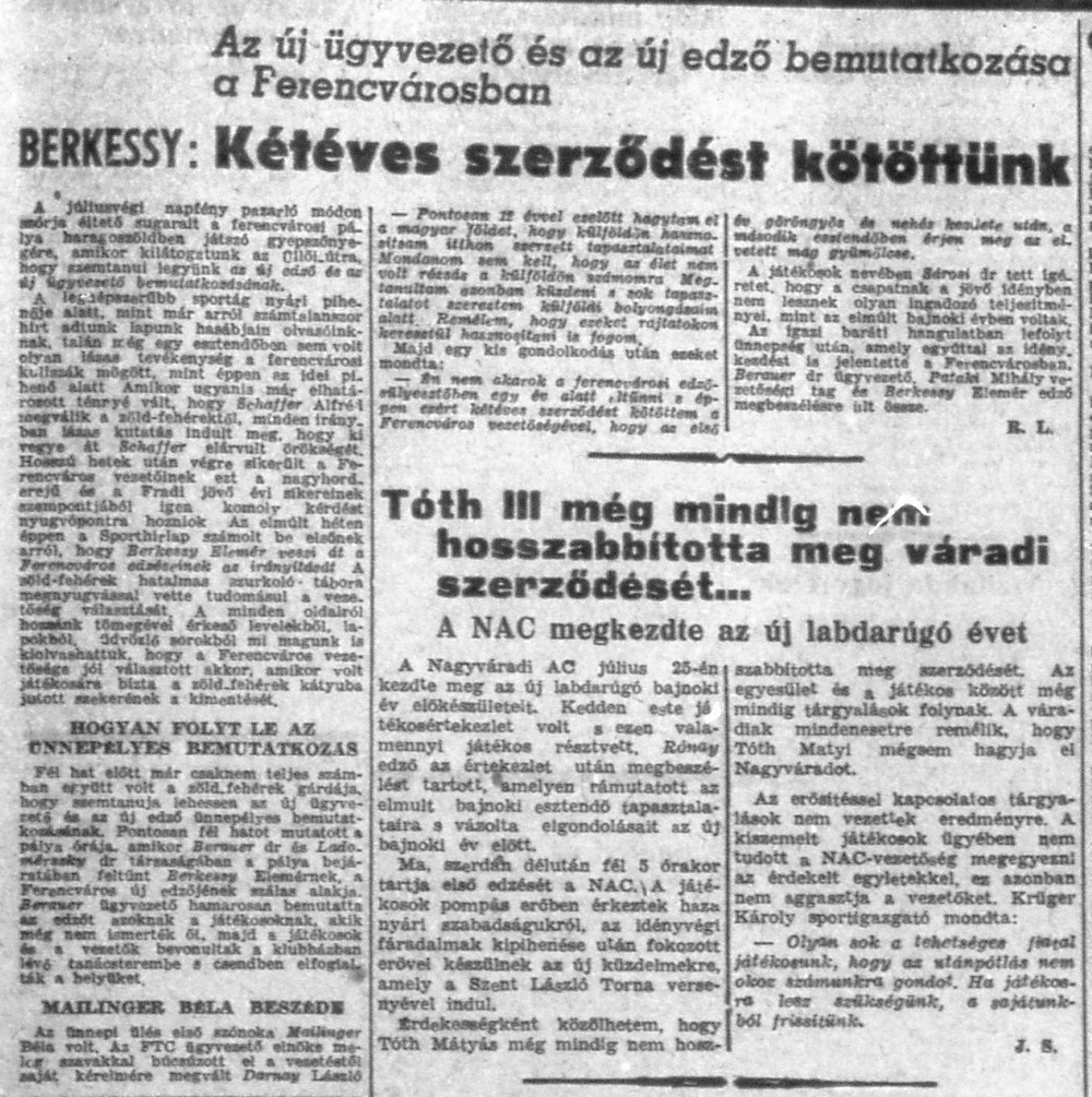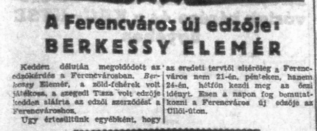 Kategória: 1944-Ősz | Címke: 1944 ősz, Berkessy Elemér, edzőmérkőzés, Ferencváros - FTC