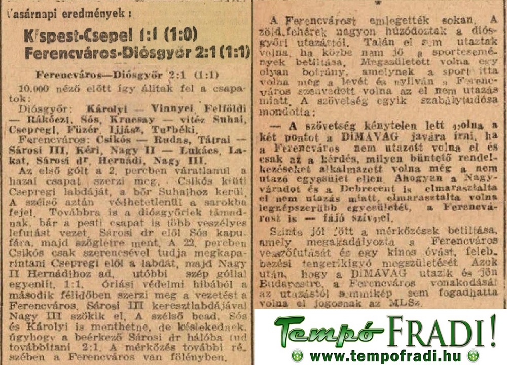 1944.X.22. Ferencváros – Kispest 6:0 (edzőmérkőzés)