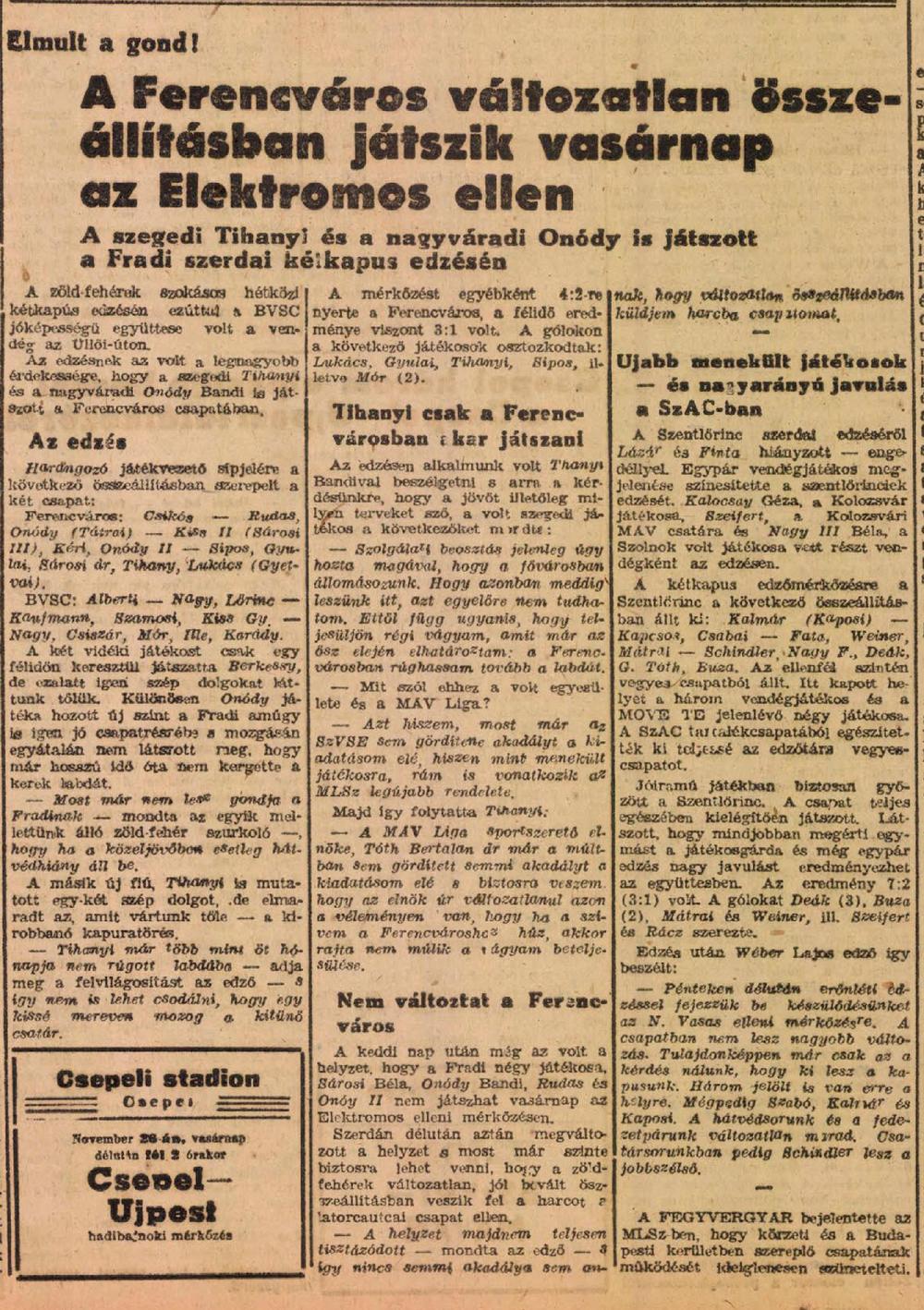 Kategória: 1944-Ősz | Címke: 1944 ősz, BVSC, edzőmérkőzés, Kiss II. János, Ónody I. Andor, Tihanyi András
