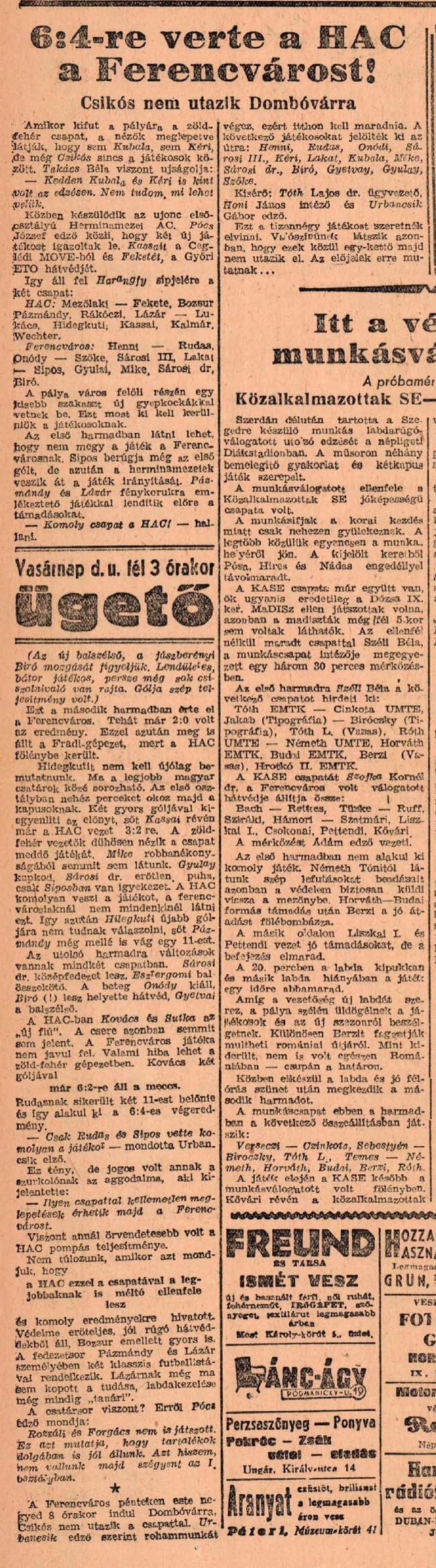 1945.IX.5. Ferencváros – HAC 4:6 (edzőmérkőzés)