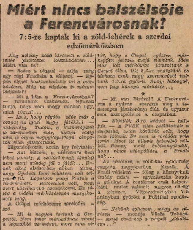 Kategória: 1945/46 | Címke: 1945/46, edzőmérkőzés, Politikai Rendőrség
