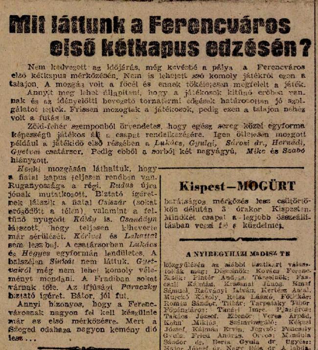 Kategória: 1946/47 | Címke: 1946/47, edzőmérkőzés, Herminamezei AC, Paraczky István