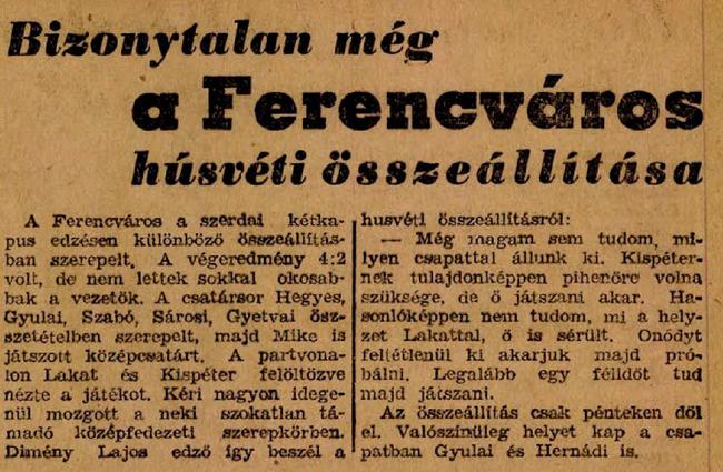 1947.IV.2. Ferencváros – MTSE 4:2 (edzőmérkőzés)