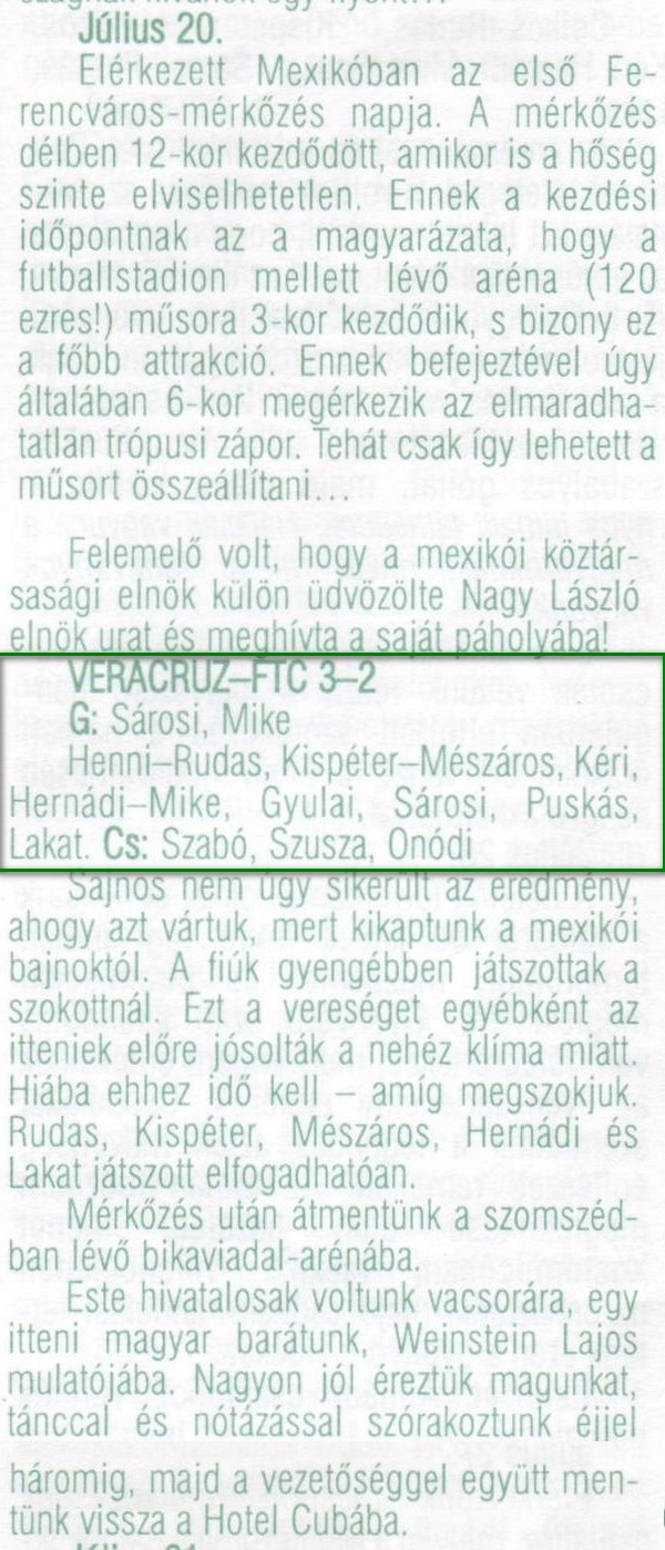 1947.VII.20. CD Veracruz – Ferencváros 3:2 Közzétéve: 2009. február 16. hétfő | Szerző: K@rcsi Első mexikói mérkőzésén vereséget szenvedett a Ferencváros – Mikével már Mexikóban sem lehet bírni Egy hozzászólás a(z) 11110011011ejegyzéshez admin on 2024. október 29. kedd - 12:06 Vélemény, hozzászólás? Válasz megszakításaAz e-mail címet nem tesszük közzé. A kötelező mezőket * karakterrel jelöltük Hozzászólás * Név * E-mail cím * Honlap Δ