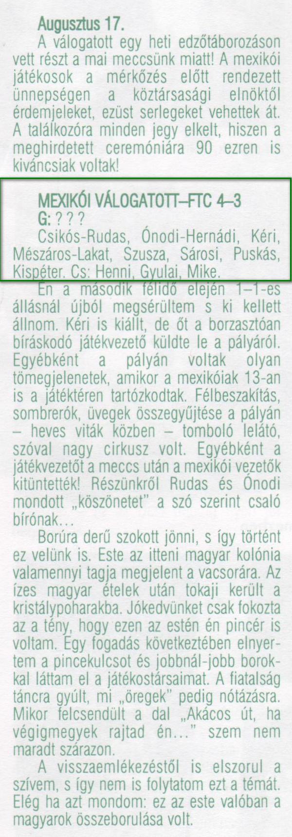 1947.VIII.17. Mexikó – Ferencváros 4:3