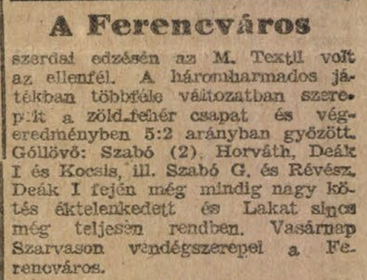 1947.X.29. Ferencváros – M. Textil 5:2 (edzőmérkőzés)
