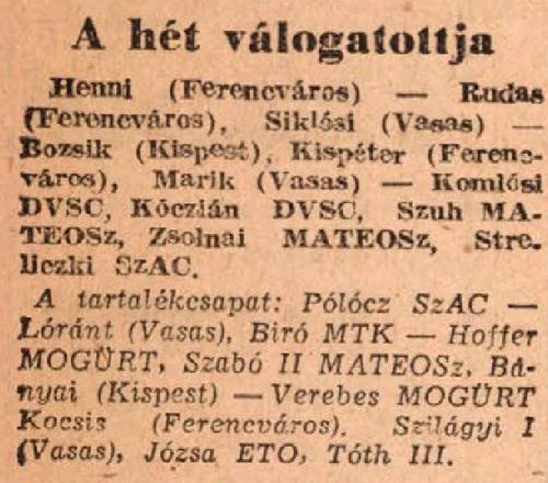 1947.XI.30. Kispest – Ferencváros 1:4