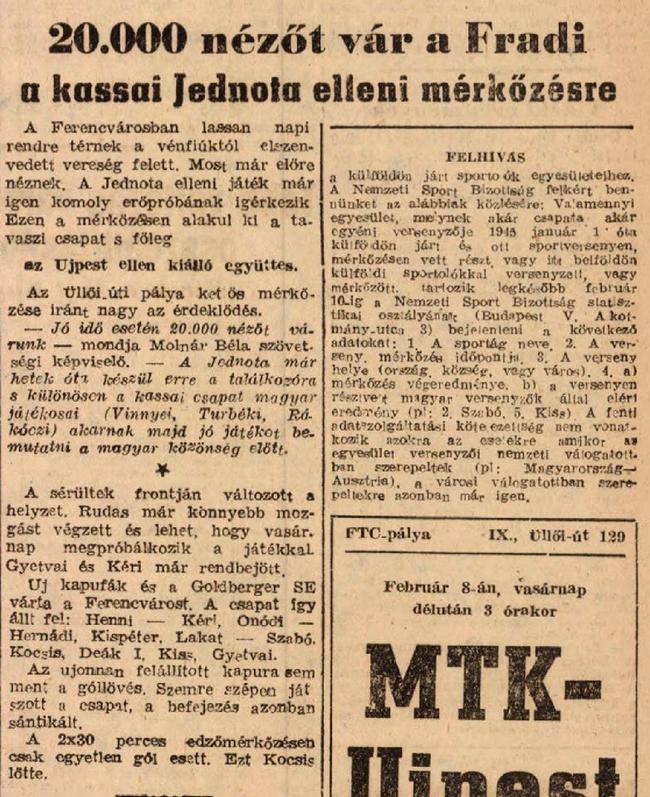 Kategória: 1947/48 | Címke: 1947/48, edzőmérkőzés, Goldberger