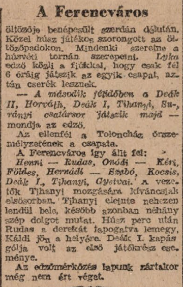 1948.III.24. Ferencváros – Toloncház őrszemélyzet ?:? (edzőmérkőzés)
