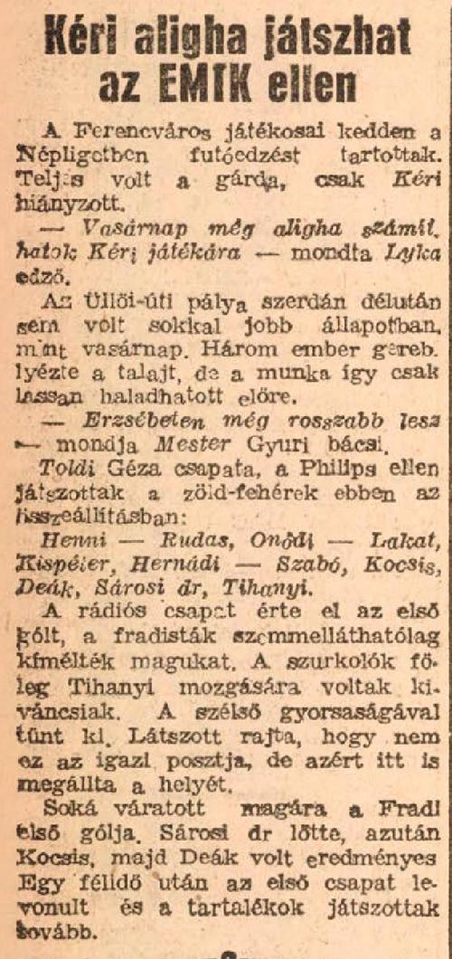 1948.III.3. Ferencváros – Philips ?:? (edzőmérkőzés)