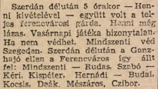 1948.IX.22. Ferencváros – Ganz Hajó ?:? (edzőmérkőzés)