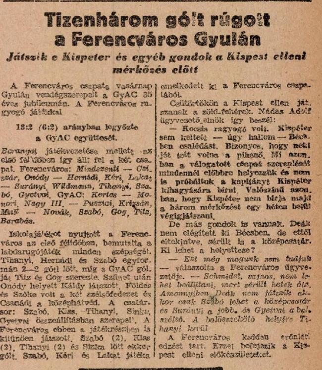 1948.V.2. Jubileumi mérkőzés, GyAC – Ferencváros 2:13