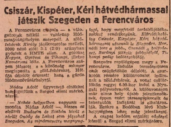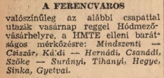 Kategória: 1947/48 | Címke: 1947/48, edzőmérkőzés, Hódmezővásárhelyi MTE
