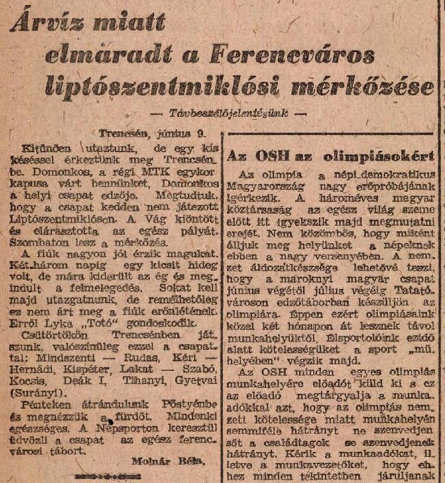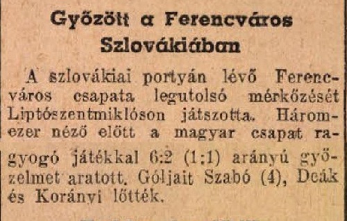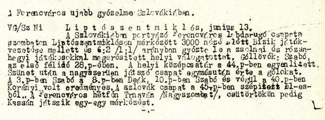 1948.VI.13. Liptószentmiklós válogatott – Ferencváros 2:6