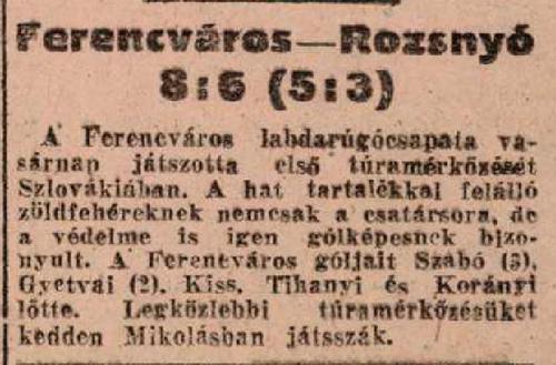 A következők utaztak: Mindszenti, Csiszár, Káldy, Hernády, Onódy, Lakat, Surányi, Kiss, Szabó, Tihanyi, Gyetvai. Első mérkőzését vasárnap játssza a Ferencváros Rozsnyón.