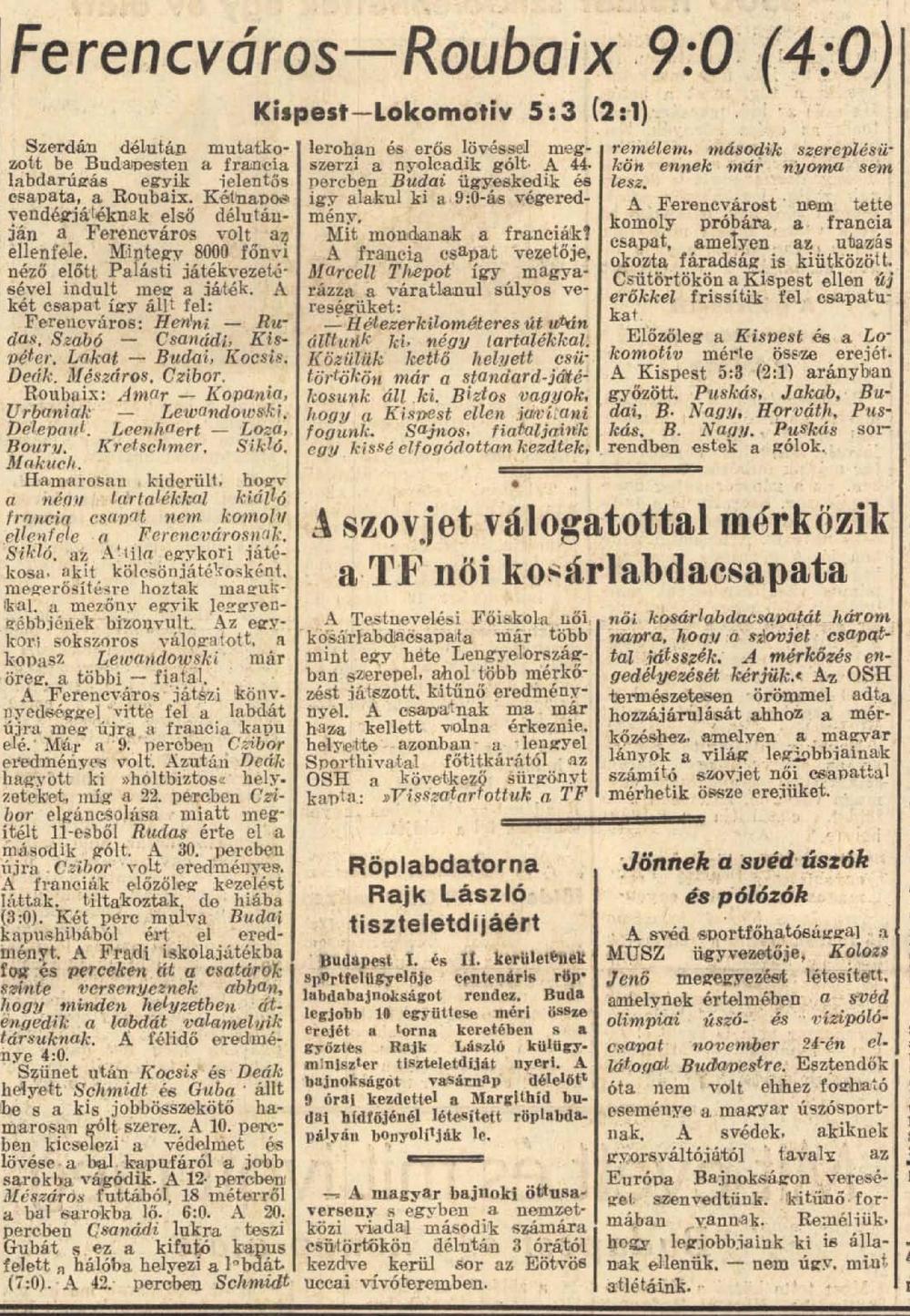 1948.X.13. SZOT serleg, Ferencváros – Roubaix 9:0