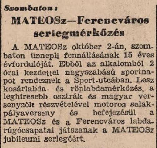 1948.X.2. MATEOSZ Jubileumi serleg, MATEOSZ – Ferencváros 0:1