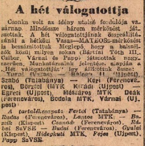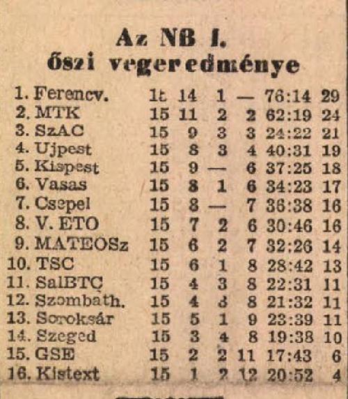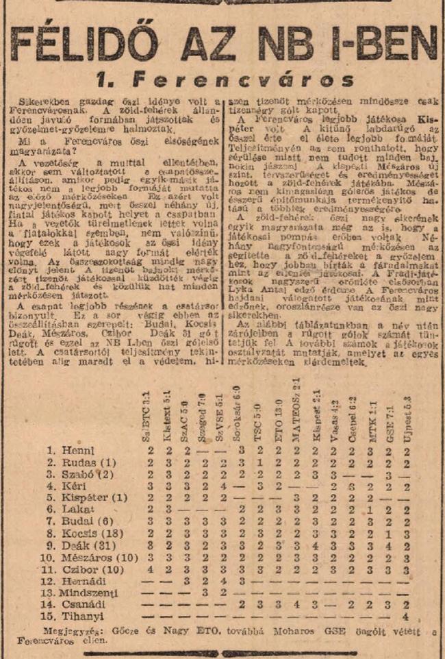 1948-ban még zöld-fehérben parádéztak és a többi remek játékossal kiegészülve (Rudas, Csanádi, Deák) egy kemény csatában győzték le az ősi ellenséget. Ezzel az 5:3-as győzelemmel meg bebiztosították az őszi elsőséget, mely a bajnokság végéig ki is tartott. A következő évek ellehetetlenítési törekvései miatt, a Ferencváros csak hatvanas évek elején tudta visszaszerezni azt a hírnevet, amit az elődök szereztek a klubnak, és amit hiába akart eltiporni a hatalom, nem volt képes rá.
